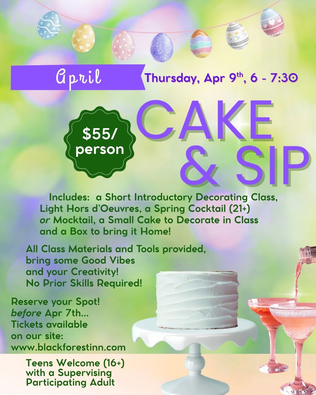 This Monthโs Theme: St. Patrickโs Day, of course! Plus a compare/contrast demonstration & tasting of American Buttercream and Swiss Meringue Buttercream! Reserve with your ticket purchase by Wednesday, March 11th. Tickets available *here*. Come for Fun, Stay for Dinner! Try our new Mini Tasting Menu with smaller portions! (Ticket Price for Class Only)